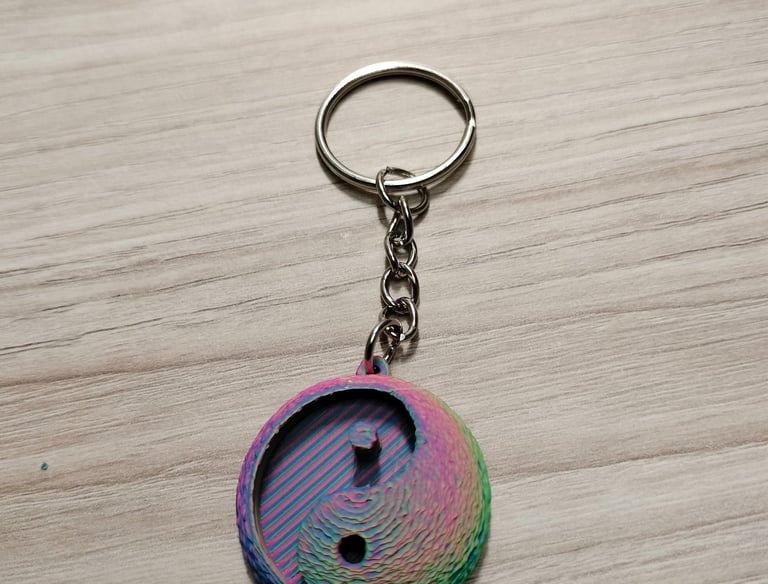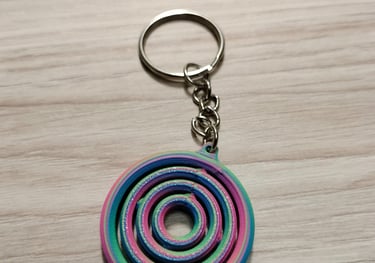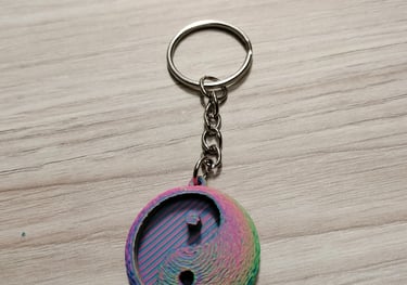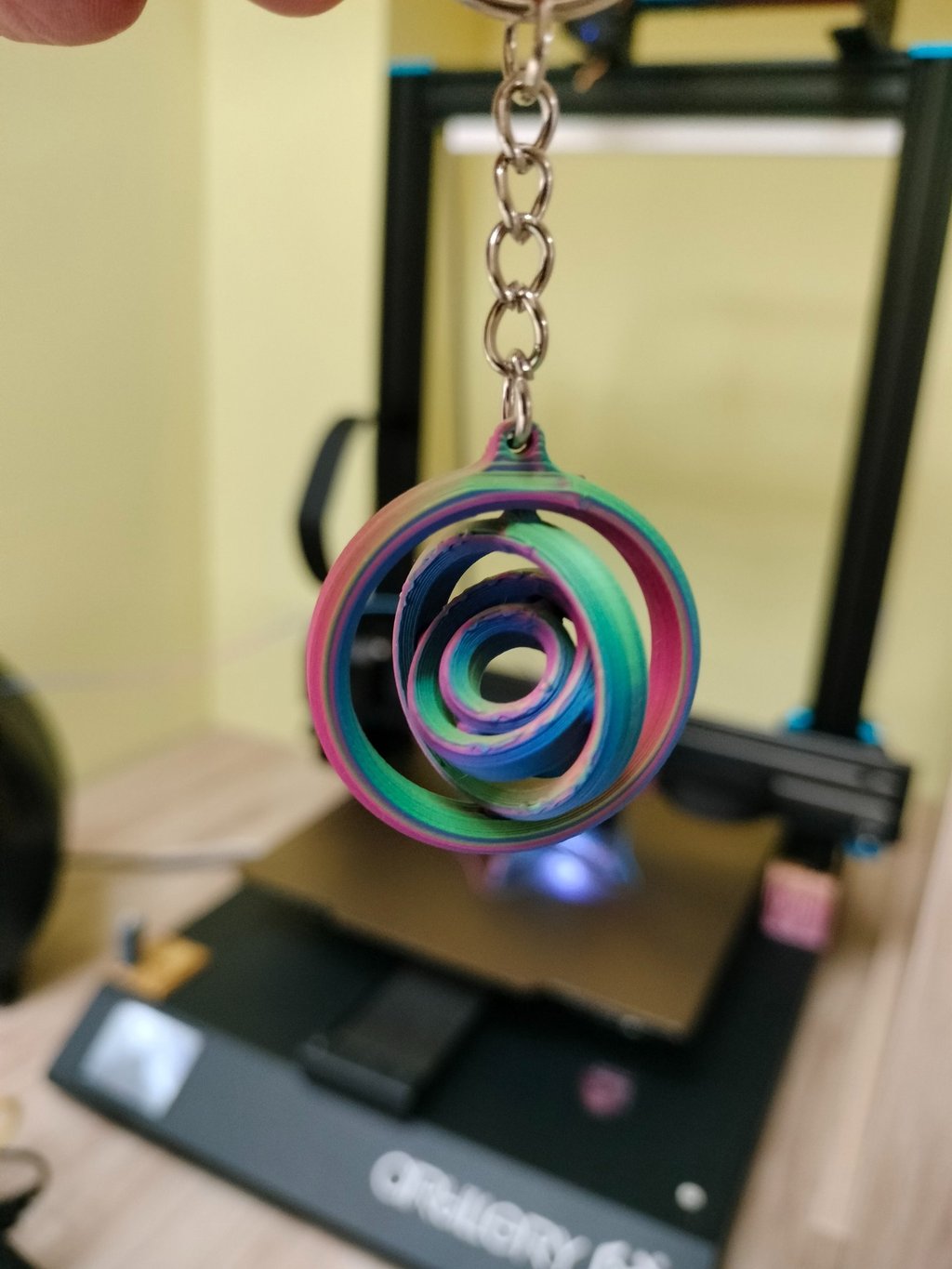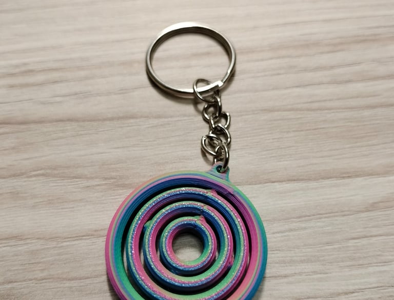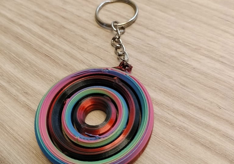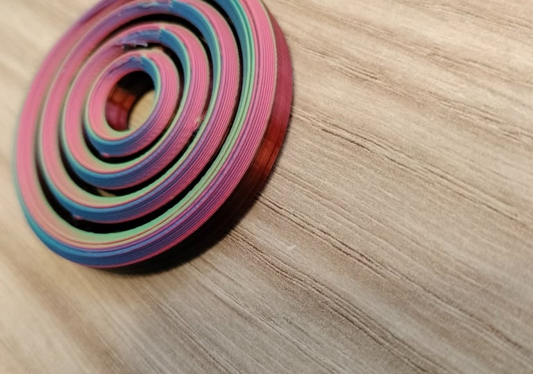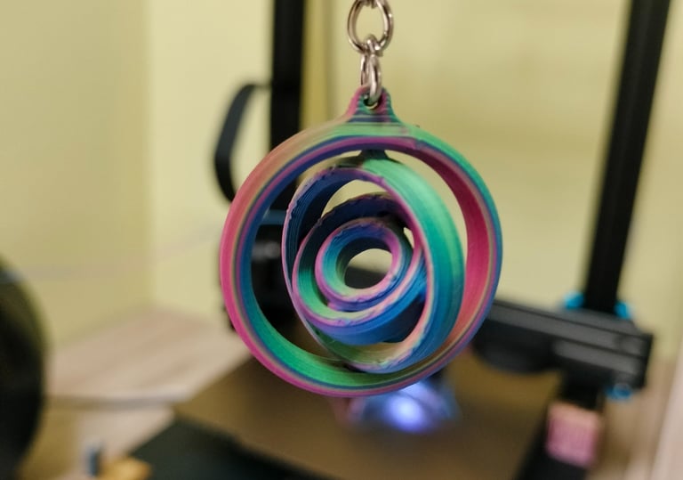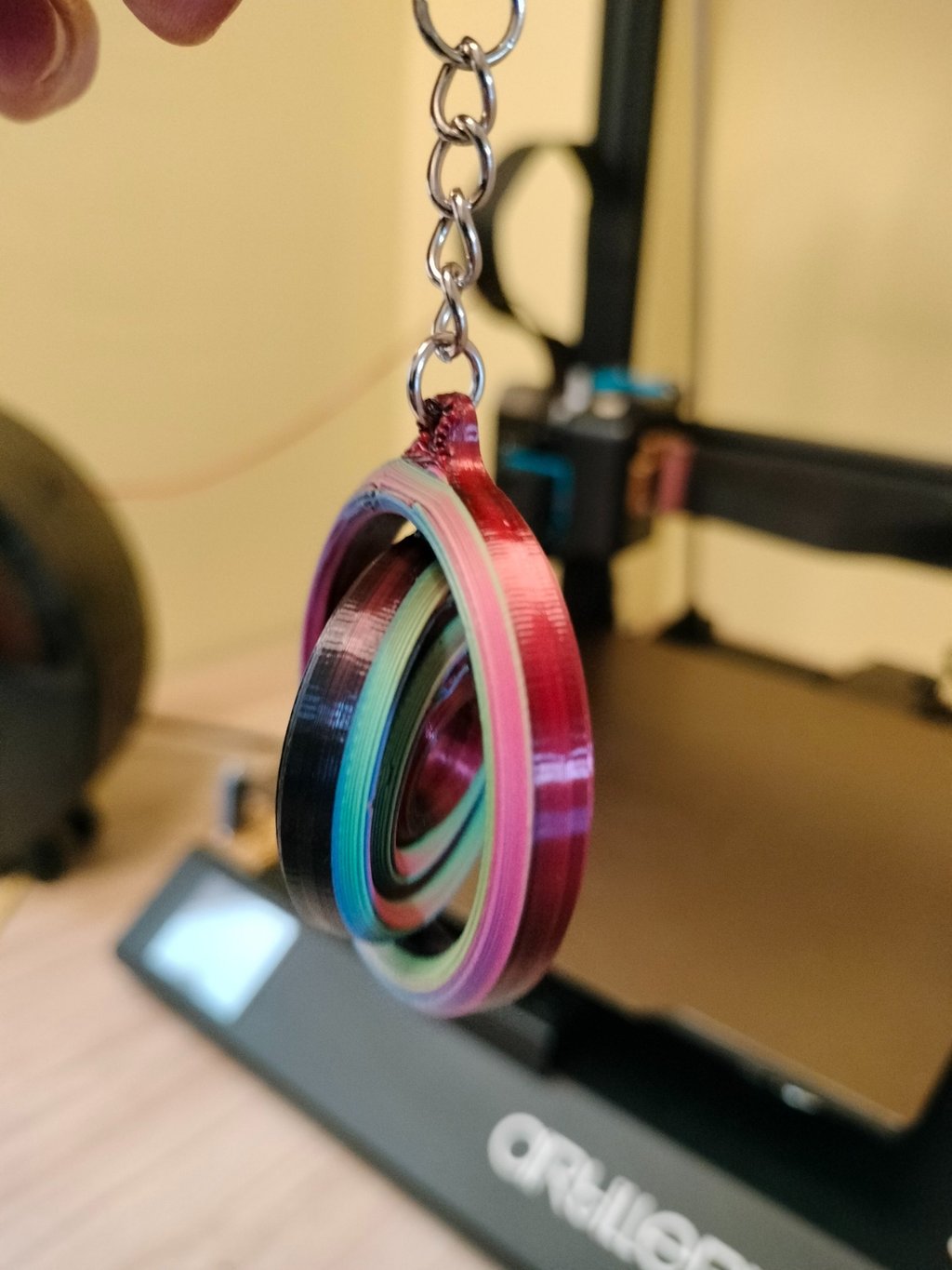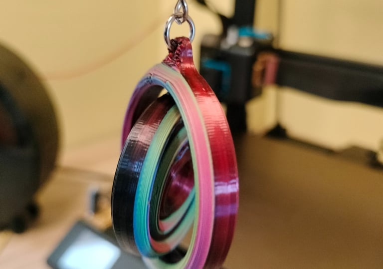 Impreso con PLA ERYONE tricolor seda: Rojo, Azul y Verde. Segun los vas girando cambia de color.