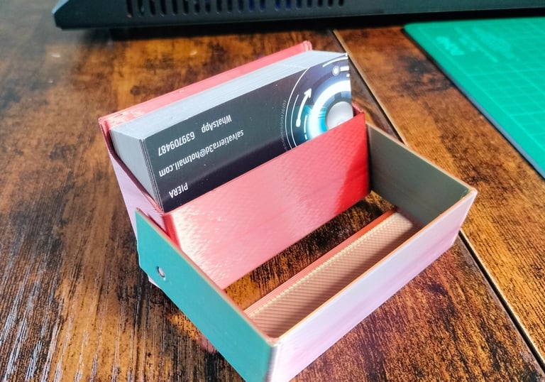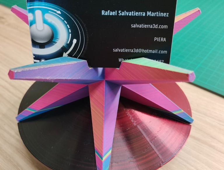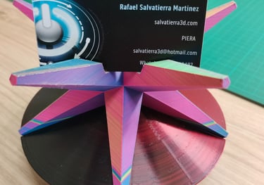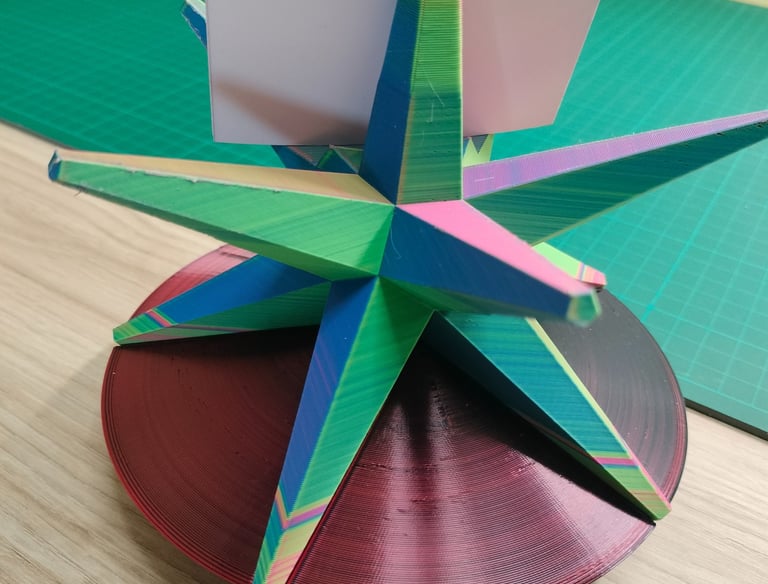 Se ha impimido en dos colores la parte de abajo en PLA + ERYONE seda negro y rojo y la parte de arriba en PLA ERYONE tricolor rosa, verde y azul