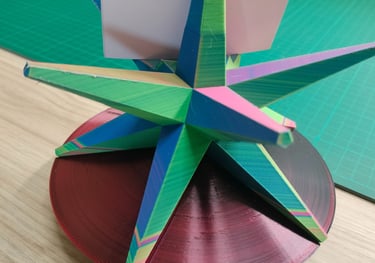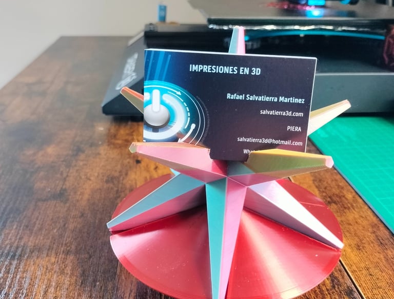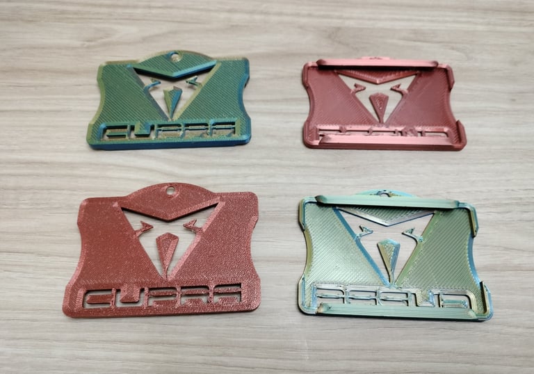 Se ha impimido en dos colores cobre y con PLA ELEGOO seda tripe color: Azul, Verde y Naranja.