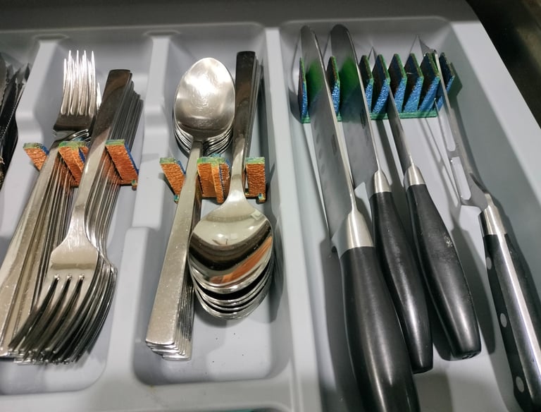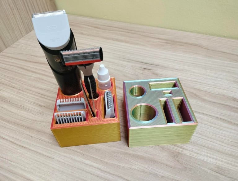 Se ha imprimido con (izquierda) SUNLU SILK PLA doble;Oro y Rojo / (derecha) ELEGOO triple color: Azul, Verde y Naranja