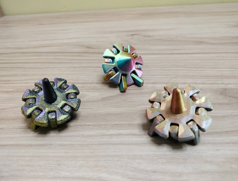 Impreso con PLA ERYONE seda tricolor oro, morado y negro.