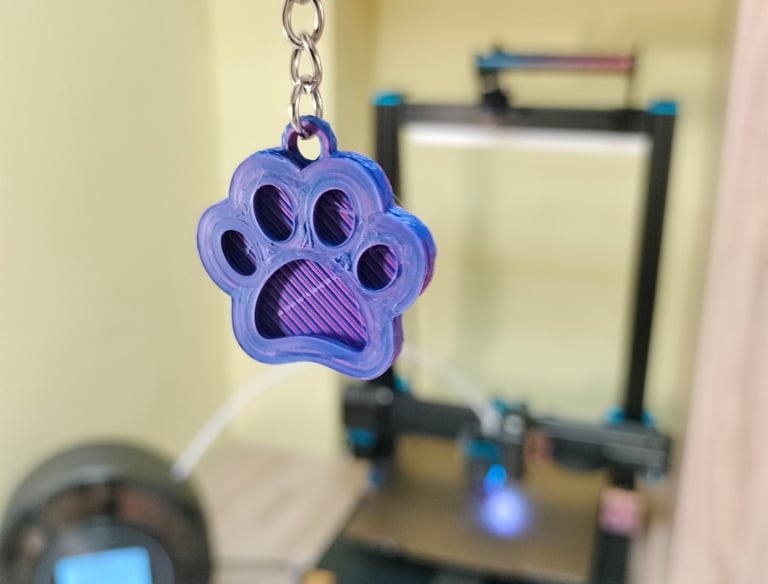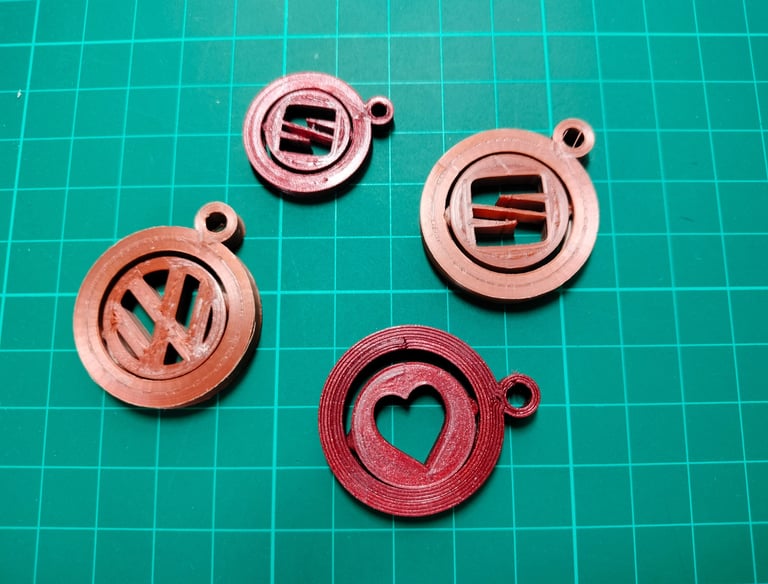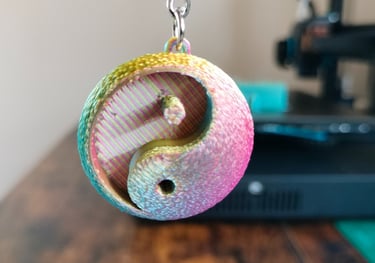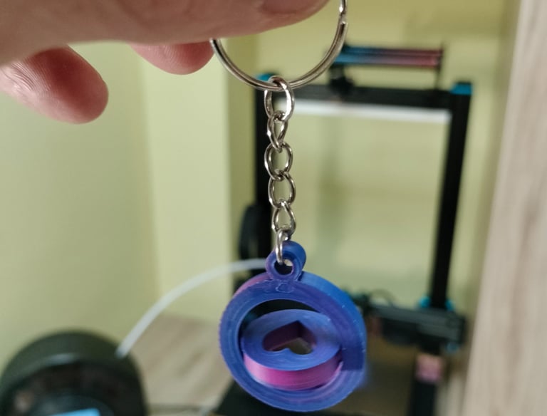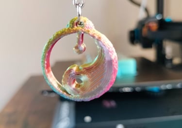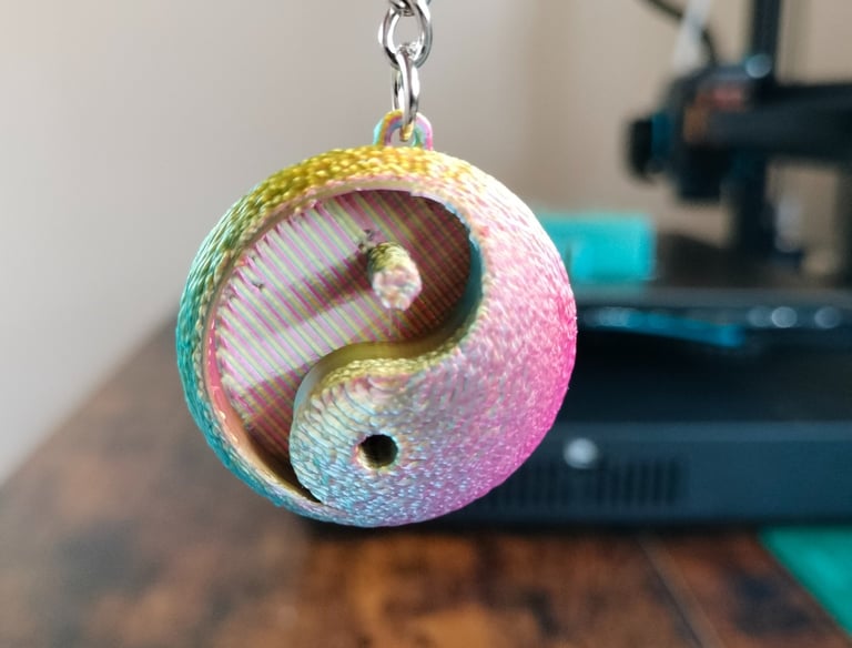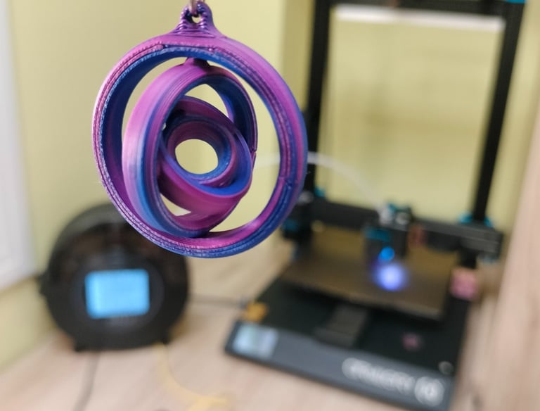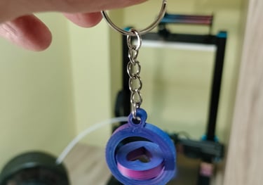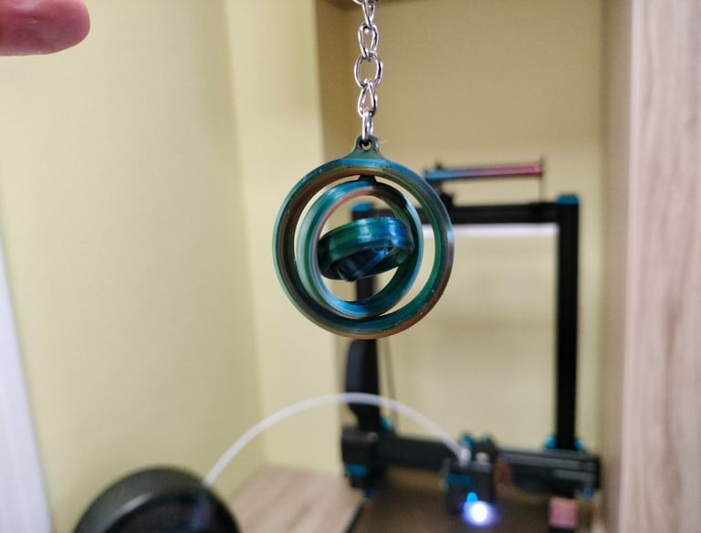 Impreso con PLA ERYONE tricolor seda: Rojo, Azul y Verde. Segun los vas girando cambia de color.
