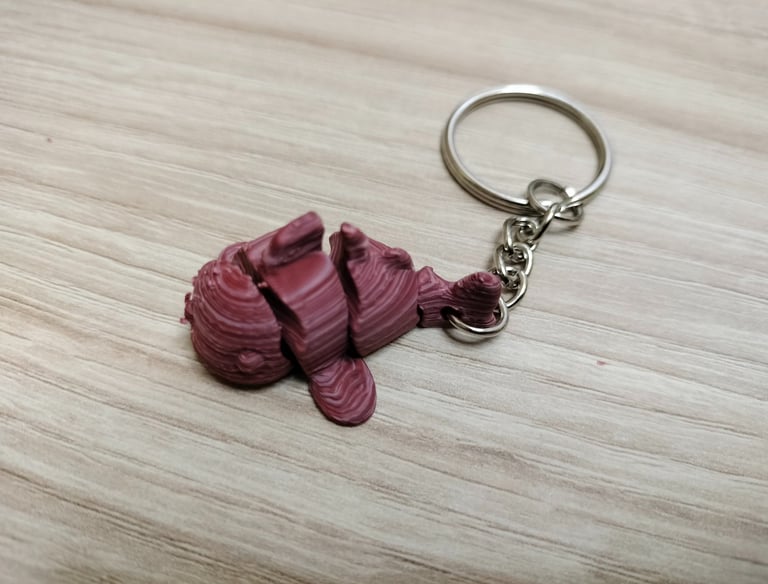 Impreso con PLA ERYONE dual color: Rosa Mate y Azul. La cola es articulada.