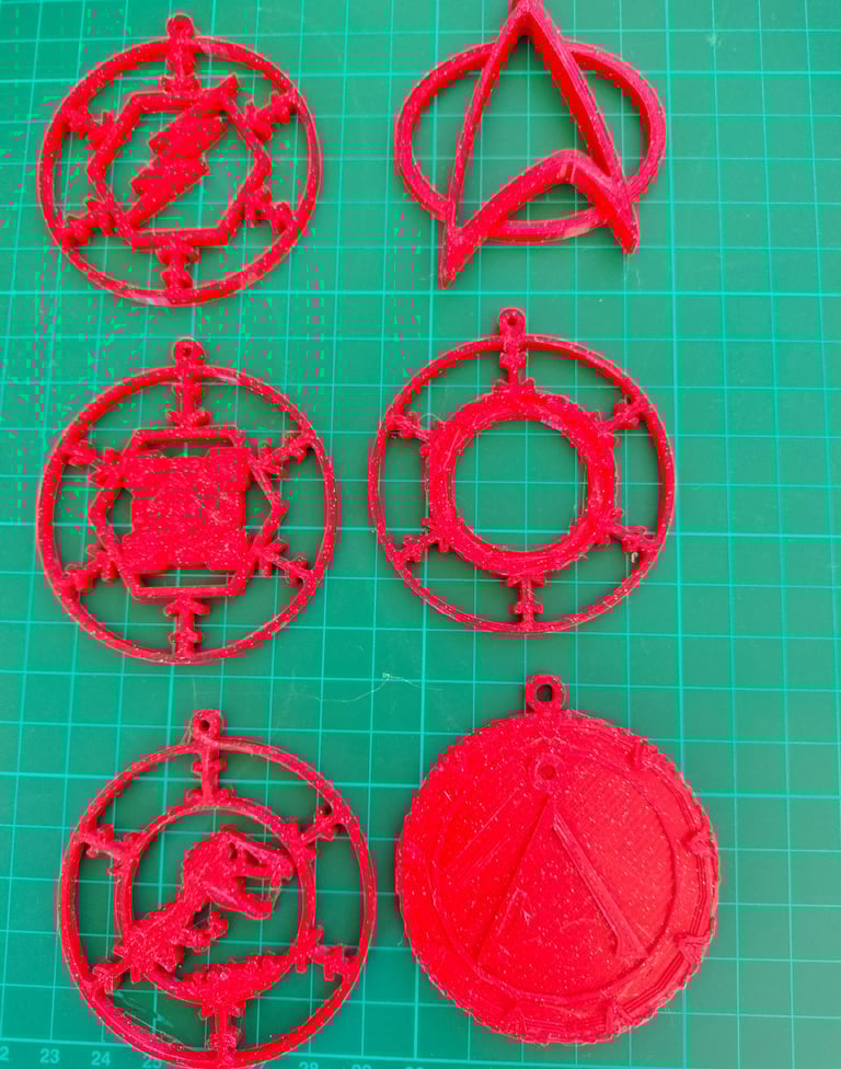 Tengo de arrow, batman, flash, firefly, jurasic, startrek, enterprise, voyager, stargate, thornwatch, triforce, wonder woman, portal cube, zelda.